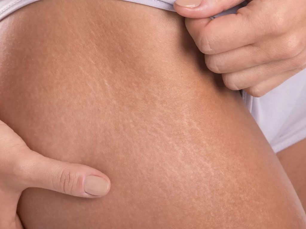 Elastin and collagen in the dermis layer of the skin gives elasticity to the skin and makes it look healthy and tight. Damage and detachment on these two important proteins and the weakening of the bonds between the fibers lead to striae (stretch marks).